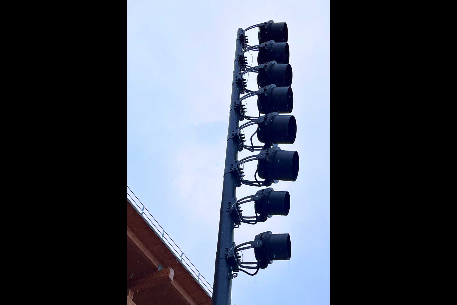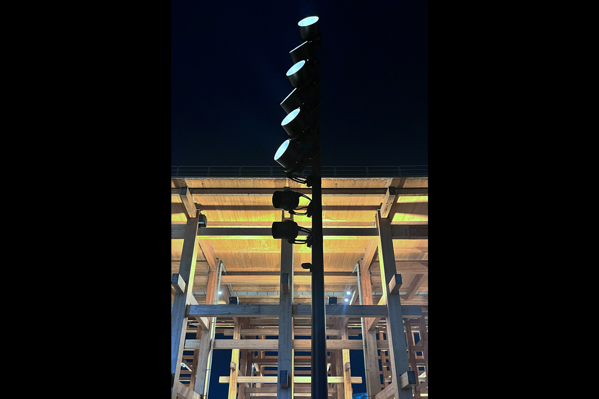 「風をはらんだ帆」の印象を夜間にも際立たせるため、