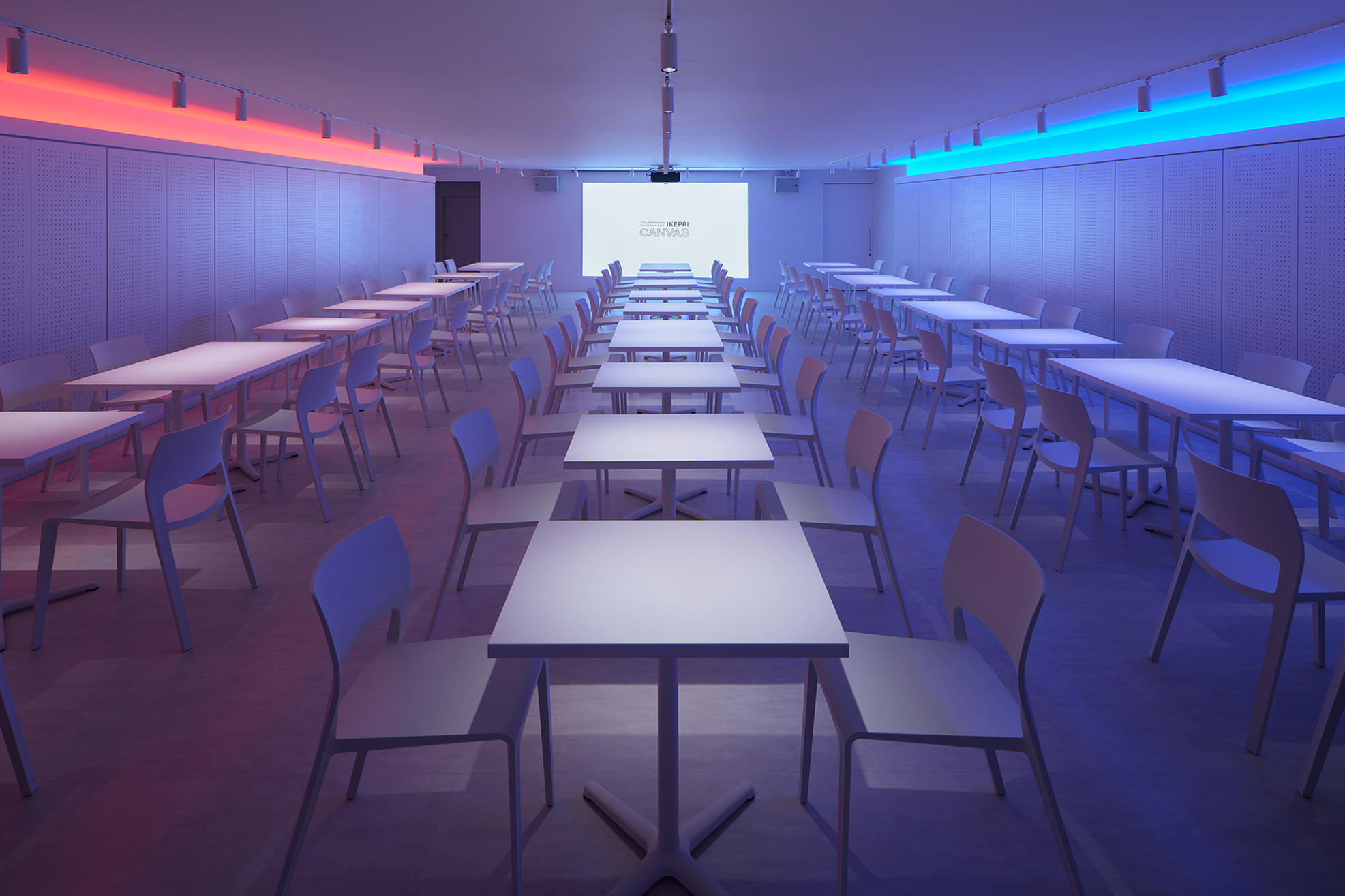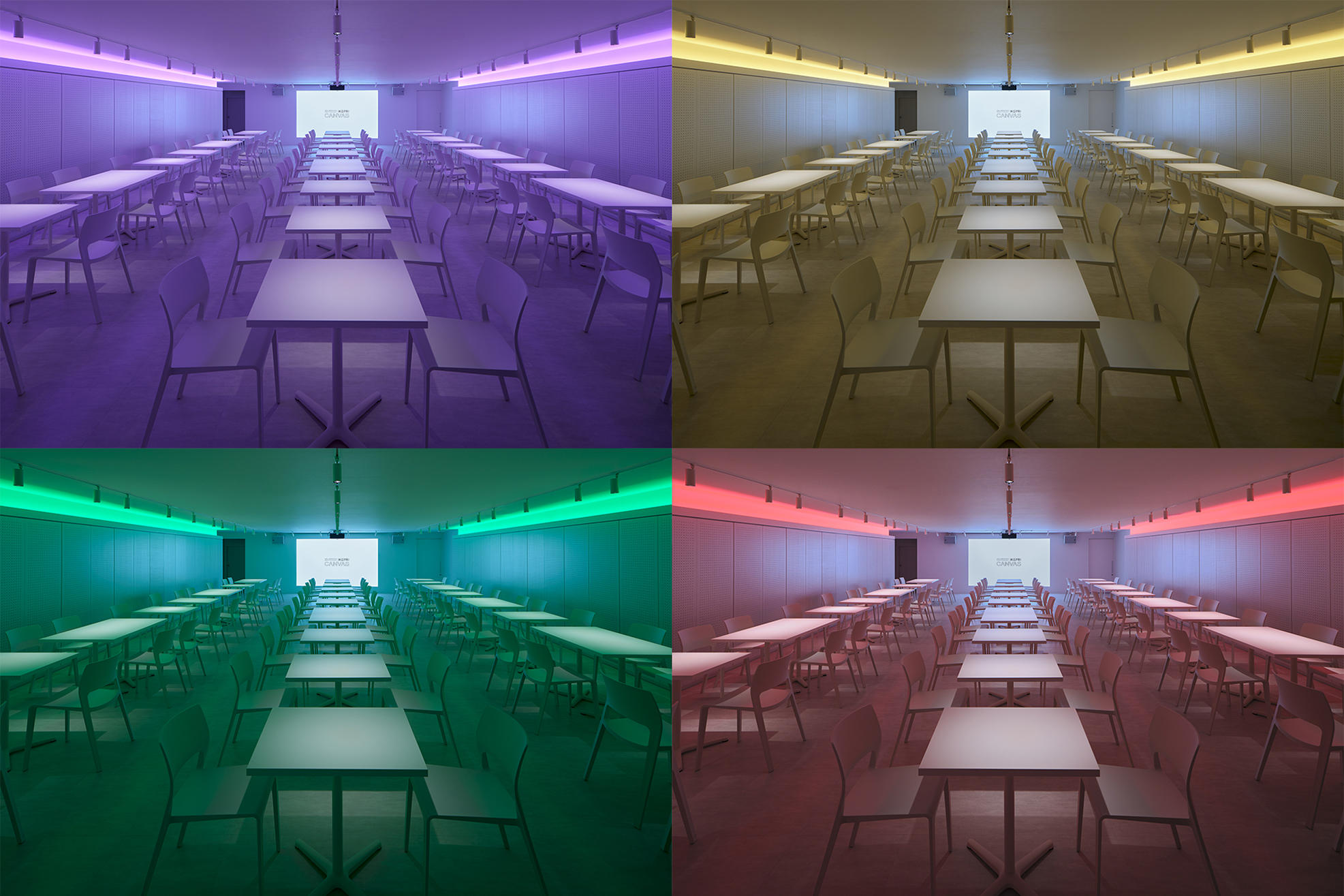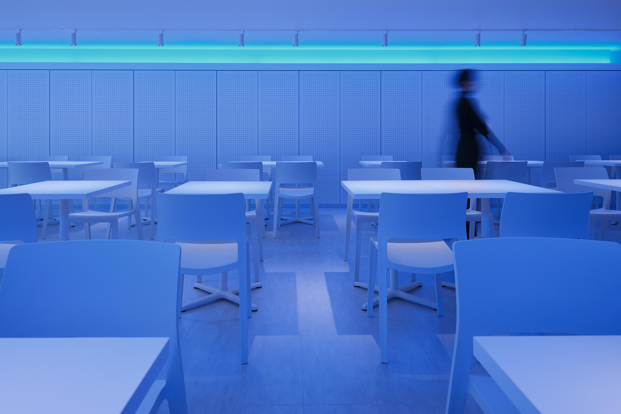 ・壁面の什器上にフルカラーの間接照明を設置。光の色を別々に変化させることにより、様々なイベントに対応し、「推し色に染まる空間」を実現する。